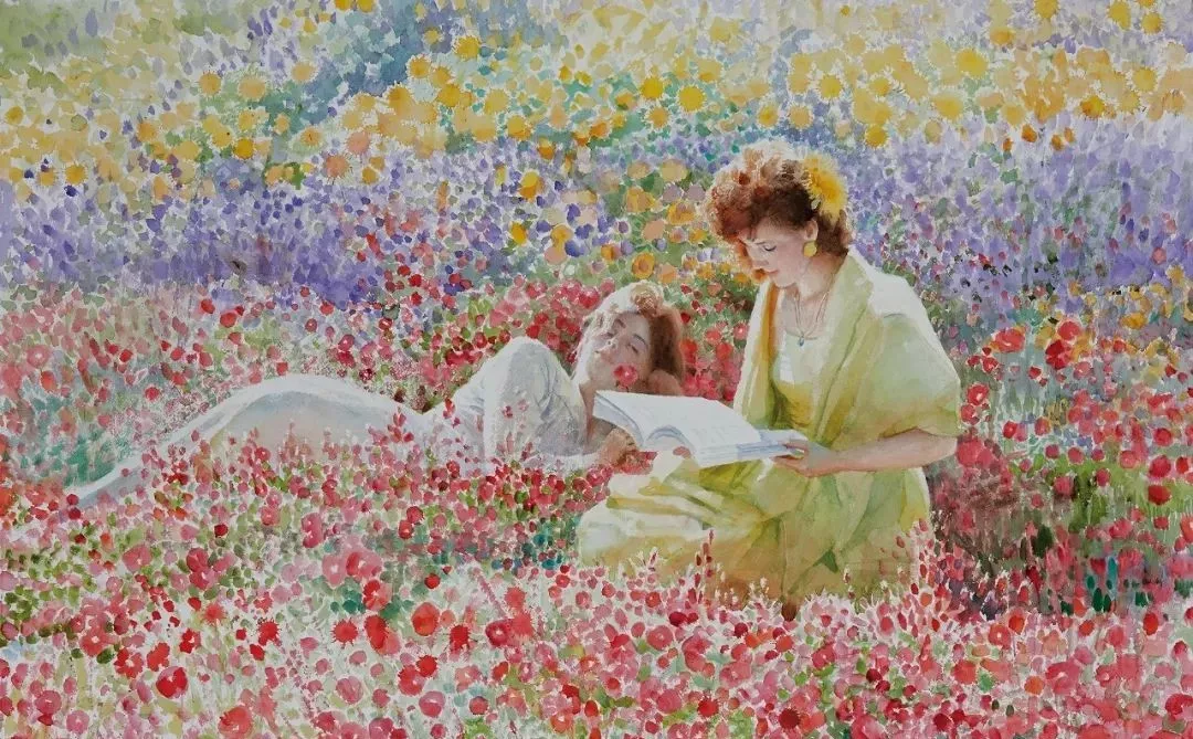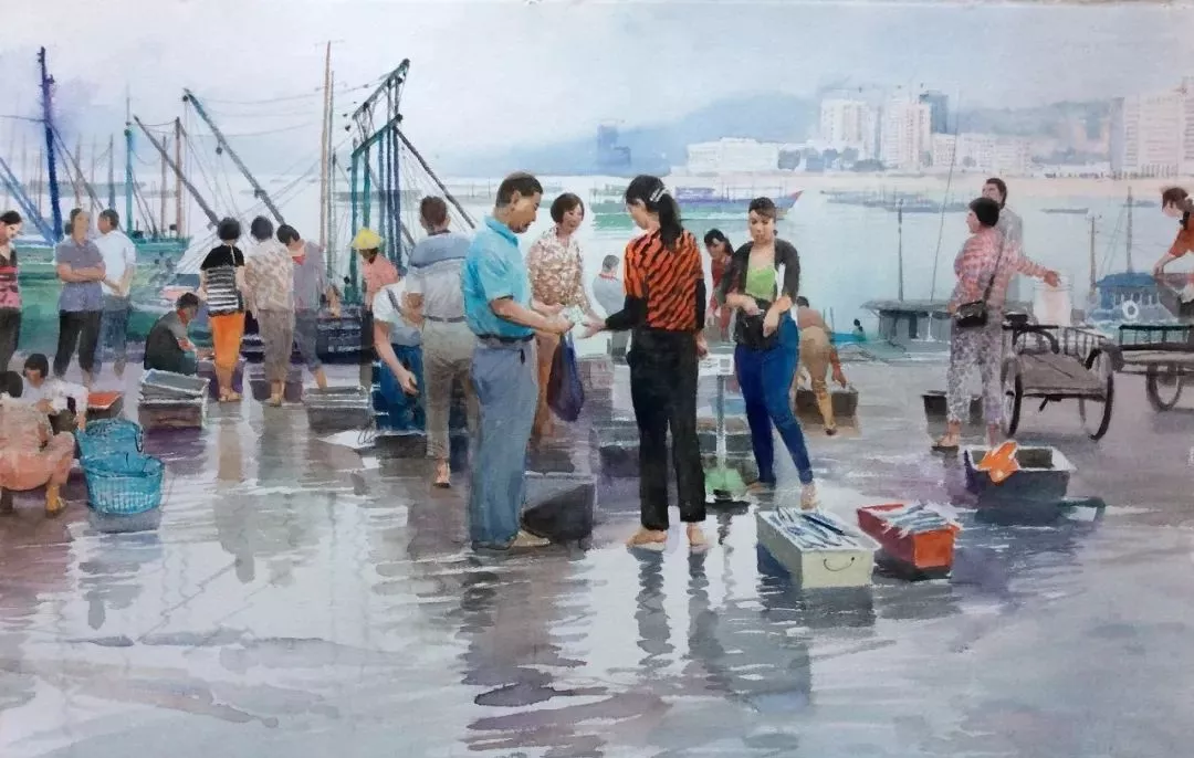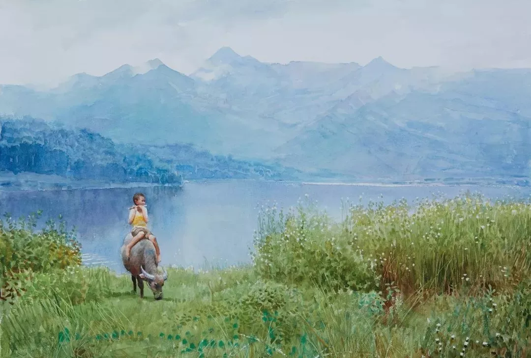 当时在增城县文化馆的一个朋友家中,黄中羊找到一本《印象派绘画史》,如获至宝。莫奈、毕莎罗、西斯莱等法国印像派画家当年也是受到排挤,走出巴黎,走出画室,到大自然里画画,这些故事深深激励了黄中羊。“田间地头里,我画日落、画日出,画远的山、画近的树,画农夫的肖像,锻炼了对色彩感的把握。”黄中羊回忆说。艰苦岁月的磨练,黄中羊的生命中与水彩画却结下了很深刻的联系。文革后,他报考广州美术学院,并顺利成为油画系研究生,师从郭绍纲、徐坚白、尹国良三位著名画家,从素描到造型、色彩,获得扎实训练,而他也一直没有放弃对水彩画的痴迷和执着探索。