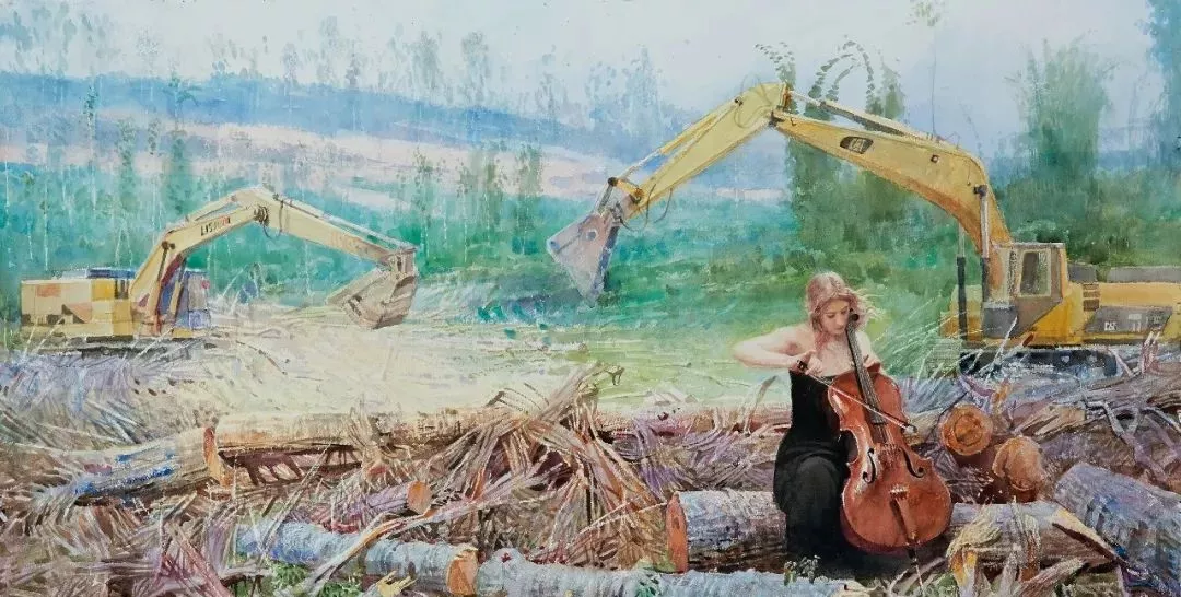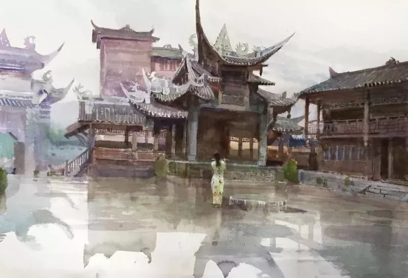 可以说,黄中羊的水彩世界“包含了想象与回忆的综合,亦包含着神秘与未知的矛盾”。“我希望中国人的水彩画不只是画画风景、画画静物,水彩同样能像油画那样驾驭深厚的情感。”近年来,黄中羊在水彩画创作中融入了更多东西方文化交融、对撞的文化因素,希望通过水彩的介质表达出更为深厚的历史情怀、民族记忆。