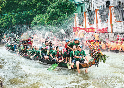 摘要: 近日,著名侨乡广东省佛山市顺德区龙潭村热闹非凡。上百条龙舟船汇集在龙母庙前河道,游龙戏水,庆祝“龙母诞”。