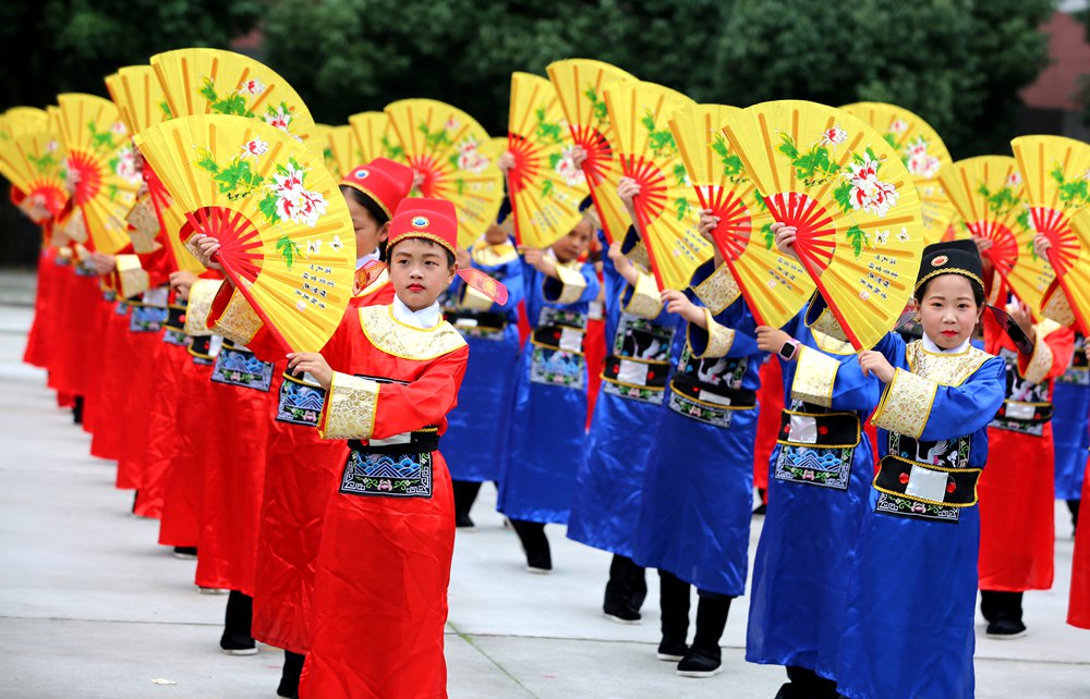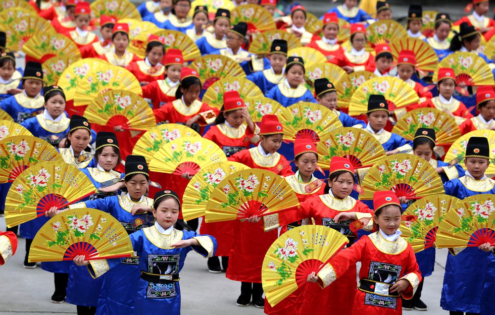 “为救李郎离家园,谁料皇榜中状元,中状元着红袍,帽插宫花好新鲜……” 6月23日上午,在湖北省竹山县得胜镇小学校园里,悠扬婉转的黄梅调萦绕耳畔,虽稚嫩却别有一番韵味,该校520名小学生正用心表演和感受着黄梅戏这一传统文化的魅力,小戏迷们的一招一式,充满戏曲韵味。手、眼、身、步配合协调,时而可爱、时而大方、时而柔情、时而爽朗,唱念做打,有模有样。